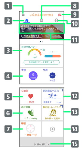 本機で測定したバイタル情報を元に、簡易なメッセージや健康管理のヒントを表示します。 -