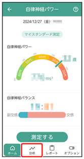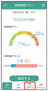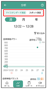 - マイスタンダード測定の結果では、週/月/年ごとの表示に切り替えることができます。
