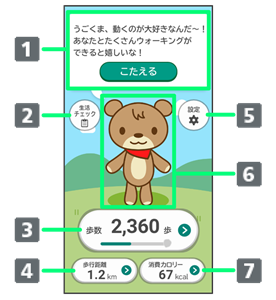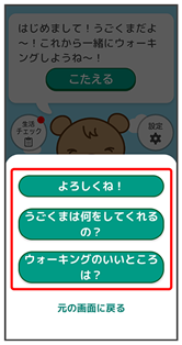 「うごくま」とのやりとりを楽しみながらウォーキングの習慣化を目指せます。