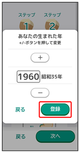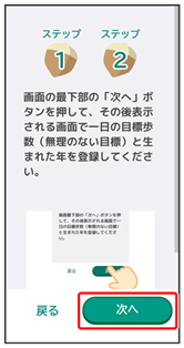 | 基本情報 | 性別や生年月日、体重、一日の目標歩数を設定します。 | |