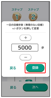 - +/-をタップすると歩数を100歩刻みで変更できます。