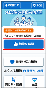 複数のお悩みを相談中の場合は、内容を選んで相談を再開することができます。