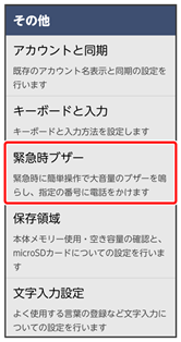 緊急時ブザーは、緊急時などに大音量のブザーを鳴らすことができる機能です。ブザーを鳴らしたとき、自動で電話をかけたり(自動音声電話発信)、SMSを送信できます(自動SMS送信)。