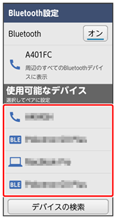 「使用可能なデバイス」欄に、近くにあるBluetooth®機器が表示されます。