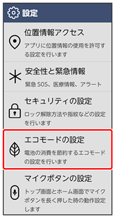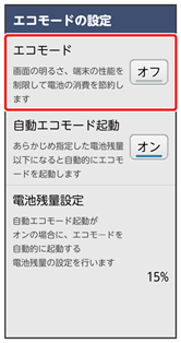 と操作すると、設定した電池残量に応じてエコモードをオンにすることができます。