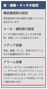 アラームの音量を設定する