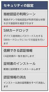 | SIMカードロック | SIMカードロックの設定やSIM PINの変更ができます。 | |
