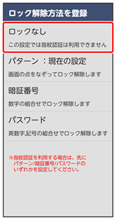 - 変更前のロック解除方法がロックなし以外のときは、ロック解除方法の設定をタップしたあとロックを解除する操作が必要です。