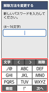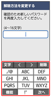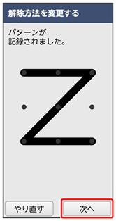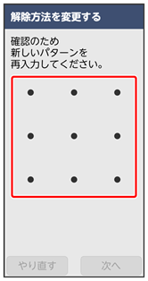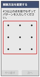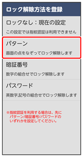 ここでは、変更前のロック解除方法を「パターン」に設定していたときの操作を例に説明しています。