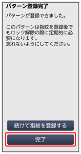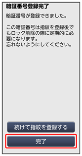 - 指紋を登録したい場合は続けて指紋を登録するをタップして、画面の指示に従って操作してください。