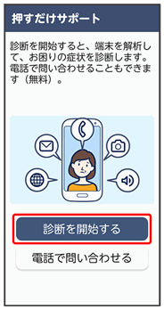 本機の症状を診断し、解決することができます。また、着信音量や文字サイズなど、一部の項目は自動で設定を調整します。