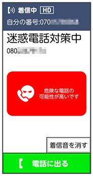 振り込め詐欺やしつこいセールス、詐欺に多く使われる海外からの電話などの危険な電話を、警告表示でお知らせします。