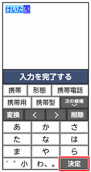 ケータイ入力/2タッチ入力時のキーボードを使用しているときを例に説明します。