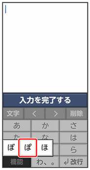キーを繰り返しタップすることなく、入力したい文字を入力できます。キーに触れると、入力できる候補が表示されます。入力したい文字が表示されている方向にフリックすると、文字が入力されます。