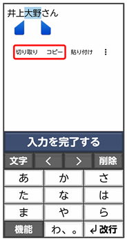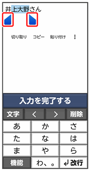 | 切り取り | 選択した文字を切り取ることできます。 | |