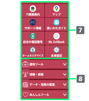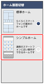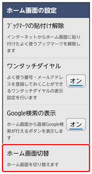 | ホーム画面切替 | ホーム画面切替のショートカットを利用できます。 | |