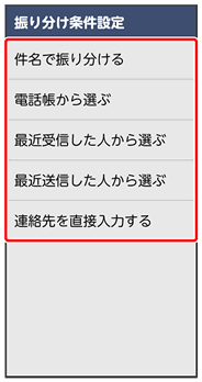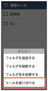 ここでは、電話帳のメールアドレスを指定してフォルダに振り分ける方法を例に説明します。