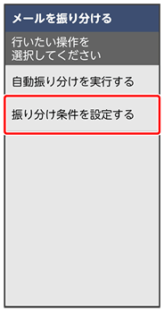 メールの件名や、電話帳の登録情報などによって自動的にメールをフォルダに振り分けることができます。