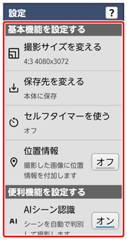 | 保存先を変える | SDカードに保存するかどうかを設定します。 | |
