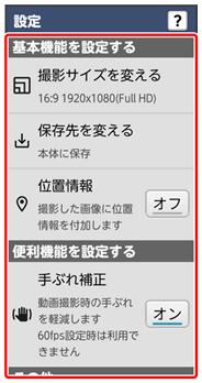 | 撮影サイズを変える | 動画の撮影サイズを設定します。 | |
