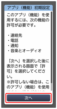 一部のアプリを利用するには、本機内のデータへのアクセスや写真撮影など、重要な機能へのアクセス権限を許可する必要があります。
