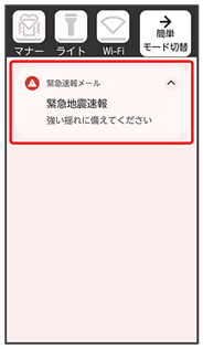 とメッセージが表示され、緊急地震速報/災害・避難情報個別の警告音およびバイブレータでお知らせします。