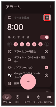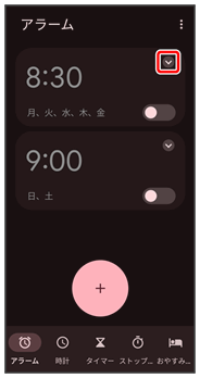 アラーム画面が表示されます。