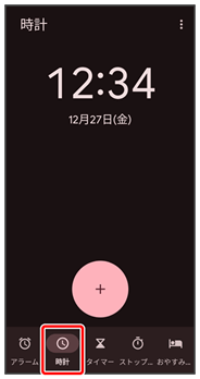 アラームや世界時計、タイマー、ストップウォッチ、おやすみ時間を利用できます。