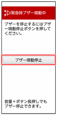 - 緊急時ブザーは、周囲の注意をこちらに向けるためのもので、犯罪防止や安全を保障するものではありません。本機能を使用した際に、万が一損害が発生したとしても、当社は一切責任を負いかねますのであらかじめご了承ください。