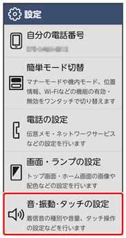 | タッチ操作音 | メニューなどをタップしたときに音を鳴らすかどうかを設定します。 | |
