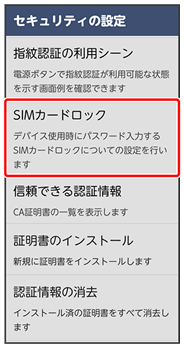 | SIMカードロック | SIMカードロックの設定やSIM PINの変更ができます。 | |