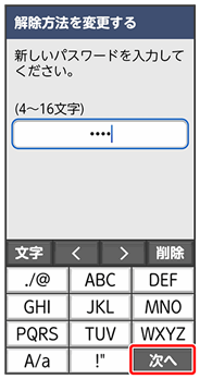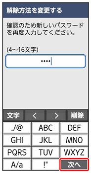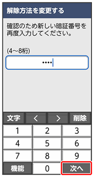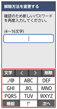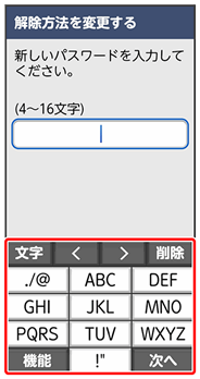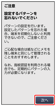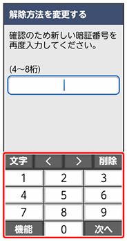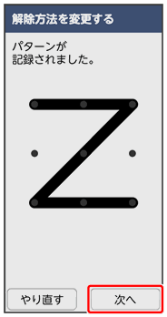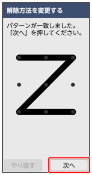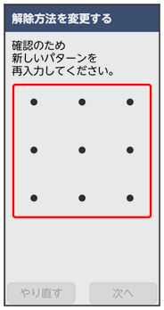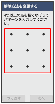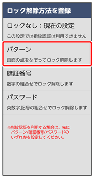 ここでは、変更前のロック解除方法を「パターン」に設定していたときの操作を例に説明しています。