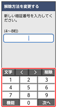 | 暗証番号 | 画面ロックを解除するための暗証番号です。 詳しくは、「暗証番号で画面ロックを解除するように設定する」を参照してください。 |