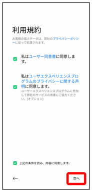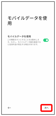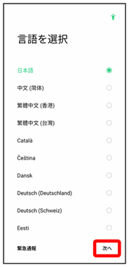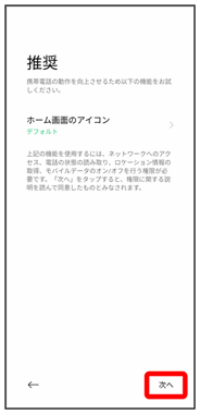 はじめて本機の電源を入れたときは、初期設定画面が表示され、Wi-FiやGoogle™ アカウントなどの設定を行うことができます。画面の指示に従って、各項目を設定してください。