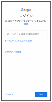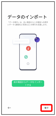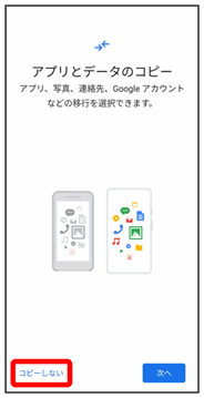をタップすると、Google アカウントを設定しているほかの端末からデータをコピーできます。画面の指示に従って操作してください。