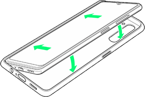 • ↓本機と保護ケース(試供品)の角を合わせ、矢印の向きで本機を保護ケース(試供品)にはめ込む