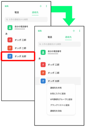 画面をロングタッチすると利用できる設定や項目が表示される画面もあります。