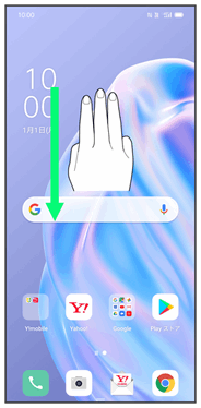| 下にフリック/スワイプすると、通知バーを表示します。2本指で下にフリック/スワイプすると、コントロールセンターを表示します。 | ||