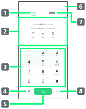 最後に入力した番号を削除します。ロングタッチすると、すべての番号を削除します。