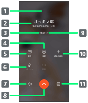 通話中は、アイコンをタップすることにより、次の機能が利用できます。