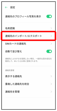 連絡先のインポート/エクスポート