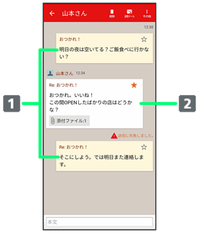 • 電話帳に未登録の相手とのメールを確認するときは、未登録をタップします。