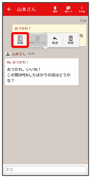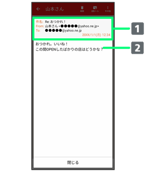 • 添付画像のときは、メール送受信画面で画像をタップしても画像の保存画面が表示されます。