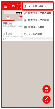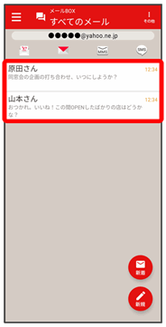 • 相手を限定せずに、迷惑メール以外の受信したすべてのメールを確認するときは、すべてのメールをタップします。