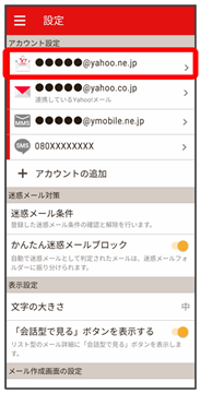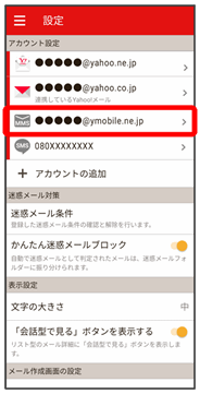 | アカウントの別表示 | Y!mobile メールと連携しているYahoo!メールを個別に表示させるかどうかを設定します。 |