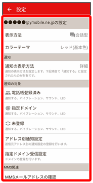| 指定ドメイン | 指定ドメインに登録した相手からメールを受信したときの通知方法を設定します。 | |