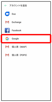 ここではGoogleのメールアカウント追加を例に説明しています。