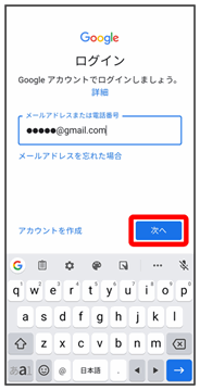 アカウントのログイン画面が表示されます。