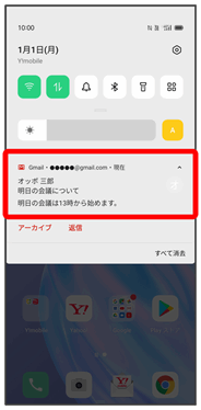 新着メールを受信するとステータスバーに