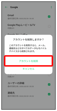 アカウントが削除されます。